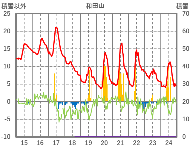 | 日 | 時 | 気温 | 降水 | 風向/風速 | 日照 | 積雪 | 降雪 |