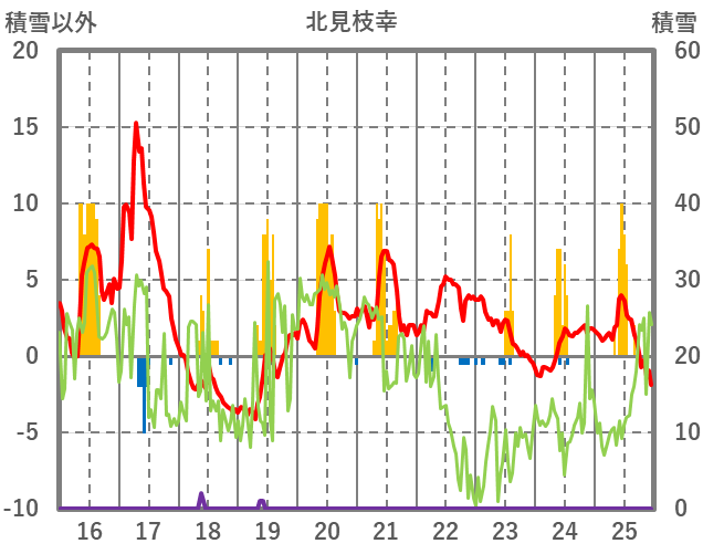 | 日 | 時 | 気温 | 降水 | 風向/風速 | 日照 | 積雪 | 降雪 |