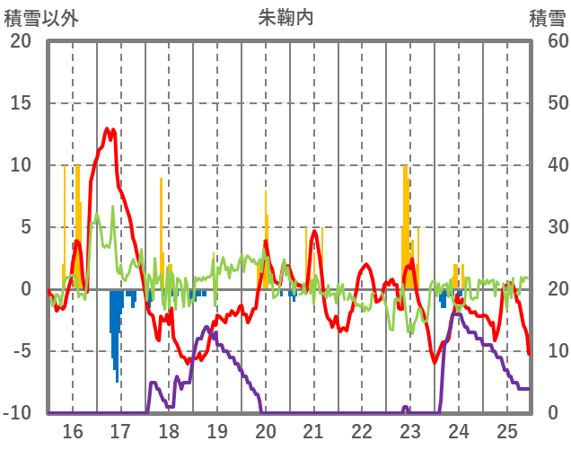 | 日 | 時 | 気温 | 降水 | 風向/風速 | 日照 | 積雪 | 降雪 |
