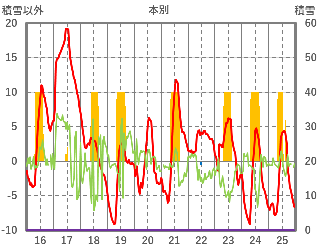 | 日 | 時 | 気温 | 降水 | 風向/風速 | 日照 | 積雪 | 降雪 |