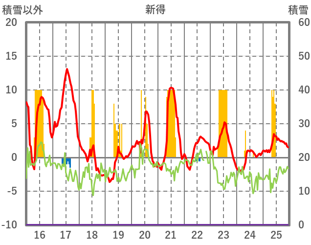 | 日 | 時 | 気温 | 降水 | 風向/風速 | 日照 | 積雪 | 降雪 |