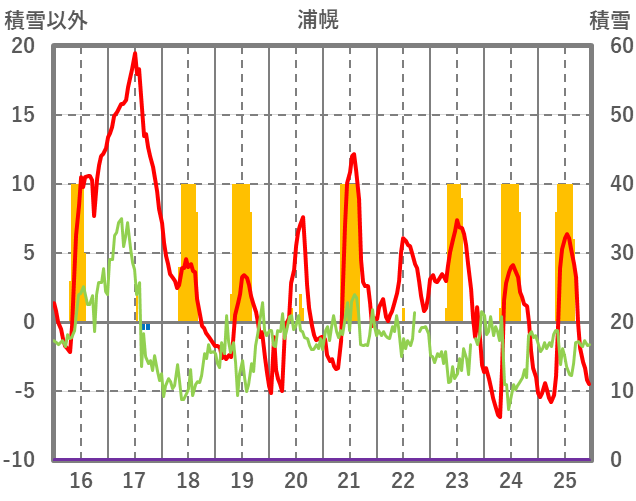 | 日 | 時 | 気温 | 降水 | 風向/風速 | 日照 | 積雪 | 降雪 |