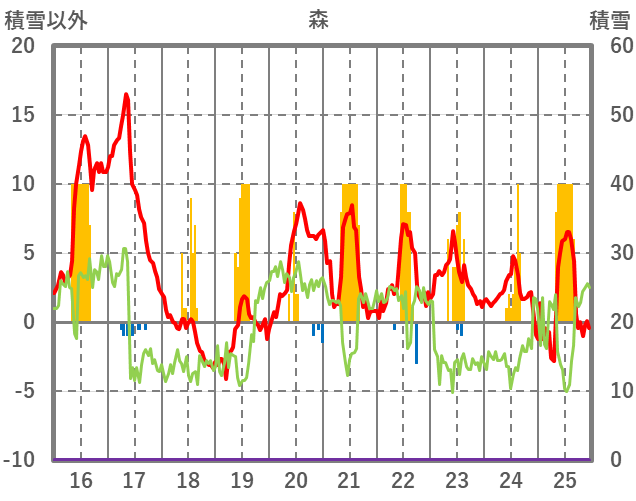 | 日 | 時 | 気温 | 降水 | 風向/風速 | 日照 | 積雪 | 降雪 |