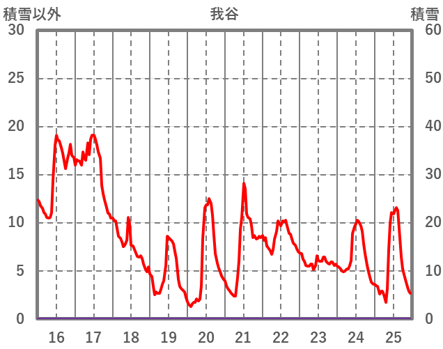 | 日 | 時 | 気温 | 降水 | 風向/風速 | 日照 | 積雪 | 降雪 |