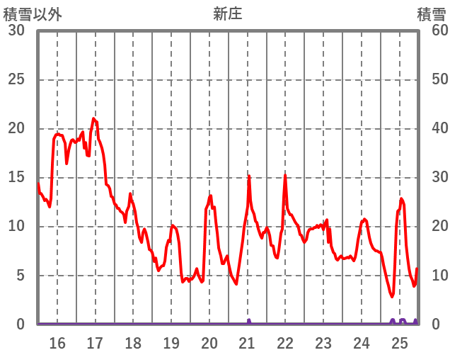 | 日 | 時 | 気温 | 降水 | 風向/風速 | 日照 | 積雪 | 降雪 |