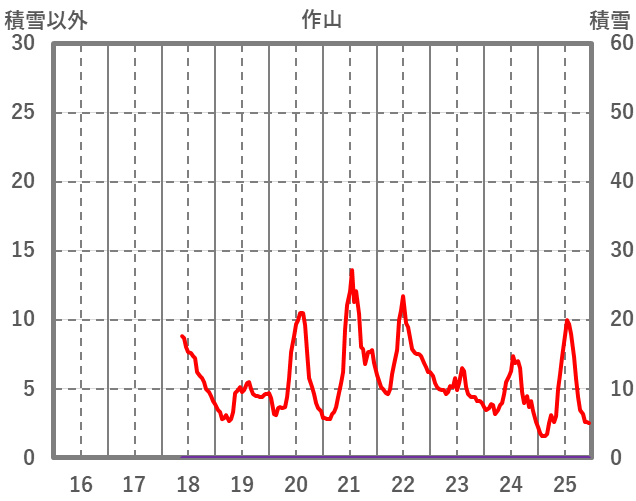 | 日 | 時 | 気温 | 降水 | 風向/風速 | 日照 | 積雪 | 降雪 |