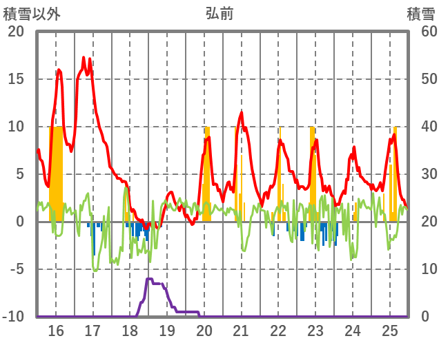 | 日 | 時 | 気温 | 降水 | 風向/風速 | 日照 | 積雪 | 降雪 |