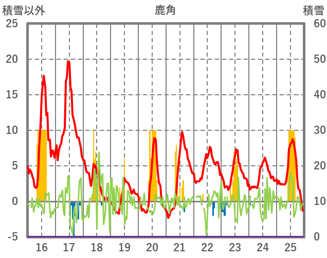 | 日 | 時 | 気温 | 降水 | 風向/風速 | 日照 | 積雪 | 降雪 |