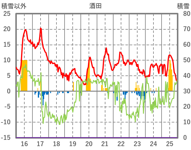 | 日 | 時 | 気温 | 降水 | 風向/風速 | 日照 | 積雪 | 降雪 |