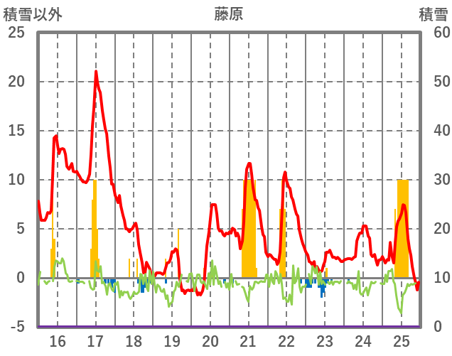 | 日 | 時 | 気温 | 降水 | 風向/風速 | 日照 | 積雪 | 降雪 |