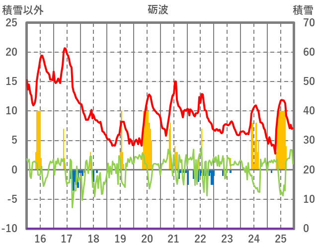 | 日 | 時 | 気温 | 降水 | 風向/風速 | 日照 | 積雪 | 降雪 |