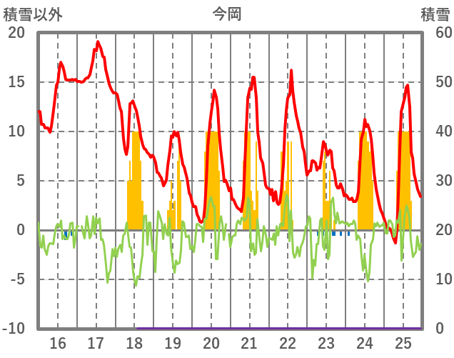 | 日 | 時 | 気温 | 降水 | 風向/風速 | 日照 | 積雪 | 降雪 |