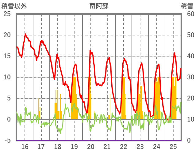 | 日 | 時 | 気温 | 降水 | 風向/風速 | 日照 | 積雪 | 降雪 |