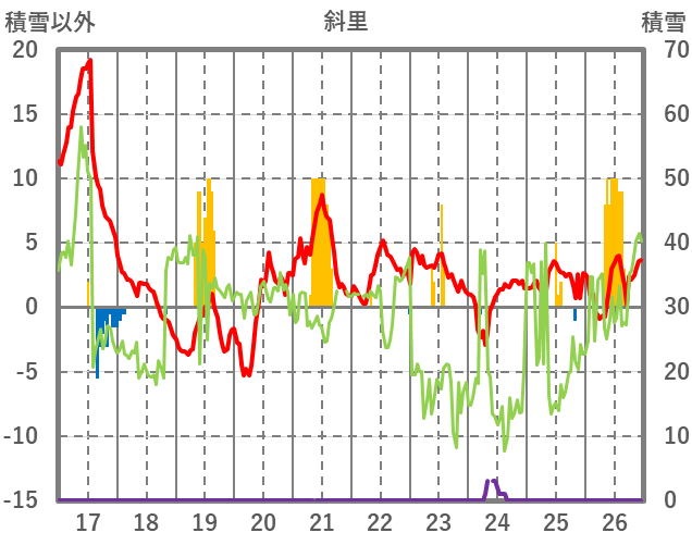 | 日 | 時 | 気温 | 降水 | 風向/風速 | 日照 | 積雪 | 降雪 |