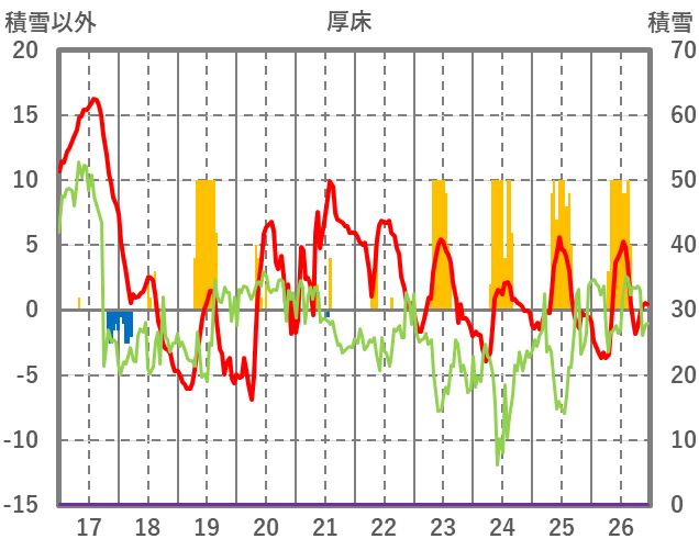 | 日 | 時 | 気温 | 降水 | 風向/風速 | 日照 | 積雪 | 降雪 |