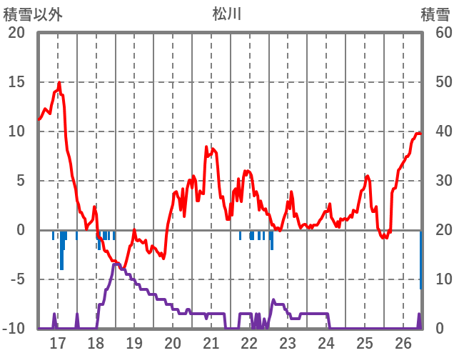| 日 | 時 | 気温 | 降水 | 風向/風速 | 日照 | 積雪 | 降雪 |