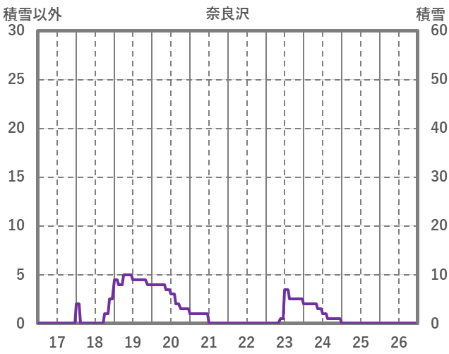 | 日 | 時 | 気温 | 降水 | 風向/風速 | 日照 | 積雪 | 降雪 |