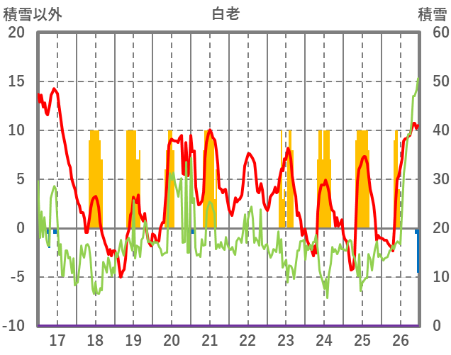 | 日 | 時 | 気温 | 降水 | 風向/風速 | 日照 | 積雪 | 降雪 |