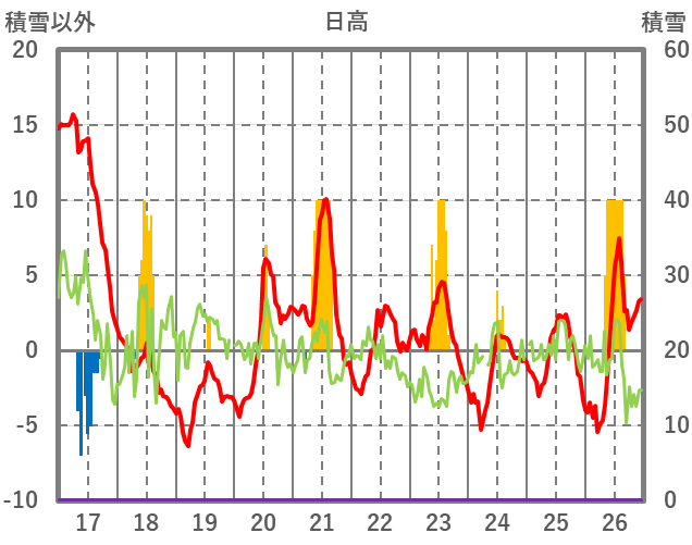 | 日 | 時 | 気温 | 降水 | 風向/風速 | 日照 | 積雪 | 降雪 |