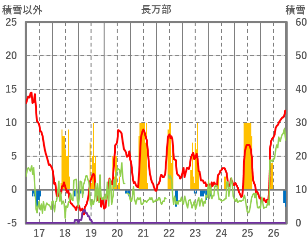 | 日 | 時 | 気温 | 降水 | 風向/風速 | 日照 | 積雪 | 降雪 |