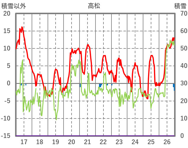 | 日 | 時 | 気温 | 降水 | 風向/風速 | 日照 | 積雪 | 降雪 |