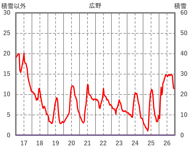 | 日 | 時 | 気温 | 降水 | 風向/風速 | 日照 | 積雪 | 降雪 |