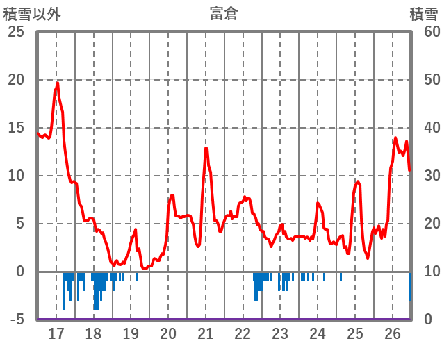 | 日 | 時 | 気温 | 降水 | 風向/風速 | 日照 | 積雪 | 降雪 |