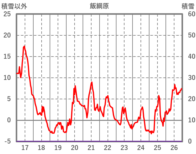 | 日 | 時 | 気温 | 降水 | 風向/風速 | 日照 | 積雪 | 降雪 |