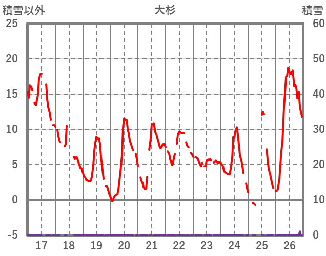 | 日 | 時 | 気温 | 降水 | 風向/風速 | 日照 | 積雪 | 降雪 |