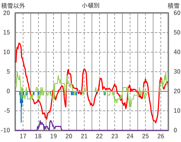| 日 | 時 | 気温 | 降水 | 風向/風速 | 日照 | 積雪 | 降雪 |