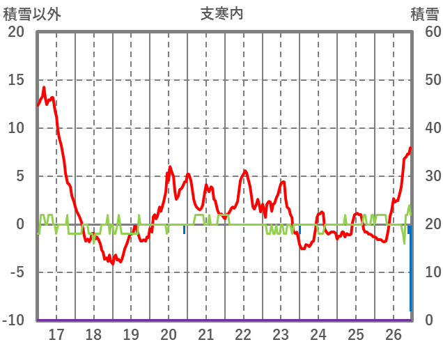 | 日 | 時 | 気温 | 降水 | 風向/風速 | 日照 | 積雪 | 降雪 |