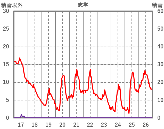 | 日 | 時 | 気温 | 降水 | 風向/風速 | 日照 | 積雪 | 降雪 |