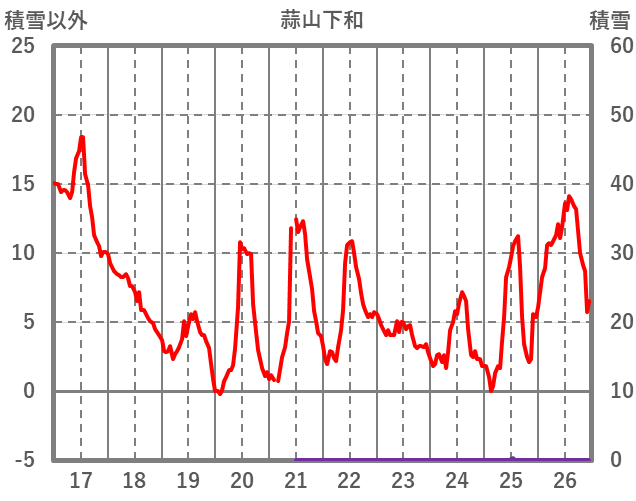 | 日 | 時 | 気温 | 降水 | 風向/風速 | 日照 | 積雪 | 降雪 |