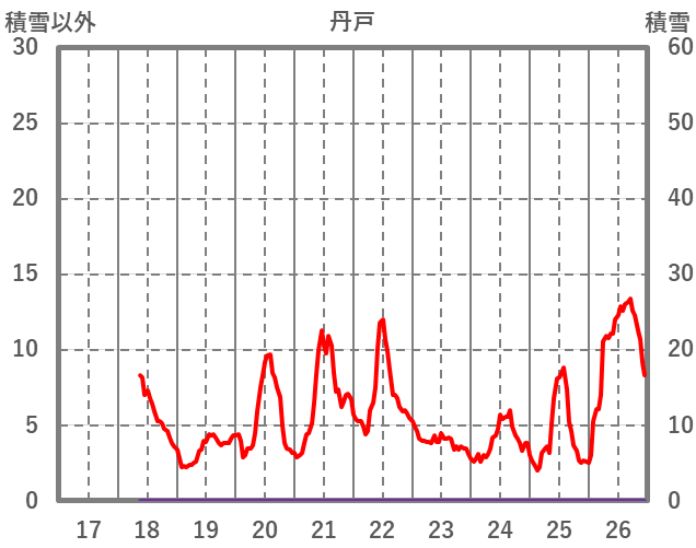 | 日 | 時 | 気温 | 降水 | 風向/風速 | 日照 | 積雪 | 降雪 |