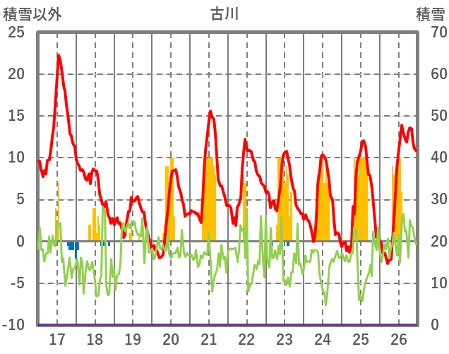 | 日 | 時 | 気温 | 降水 | 風向/風速 | 日照 | 積雪 | 降雪 |