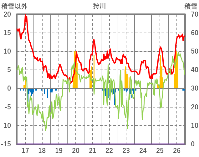 | 日 | 時 | 気温 | 降水 | 風向/風速 | 日照 | 積雪 | 降雪 |