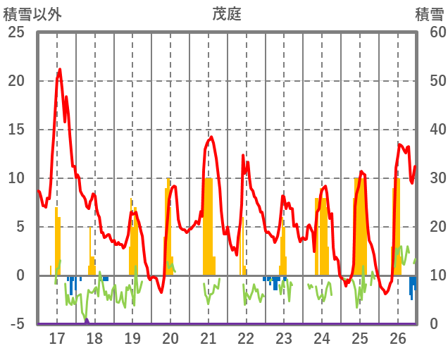 | 日 | 時 | 気温 | 降水 | 風向/風速 | 日照 | 積雪 | 降雪 |