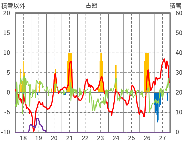 | 日 | 時 | 気温 | 降水 | 風向/風速 | 日照 | 積雪 | 降雪 |