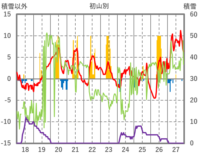 | 日 | 時 | 気温 | 降水 | 風向/風速 | 日照 | 積雪 | 降雪 |