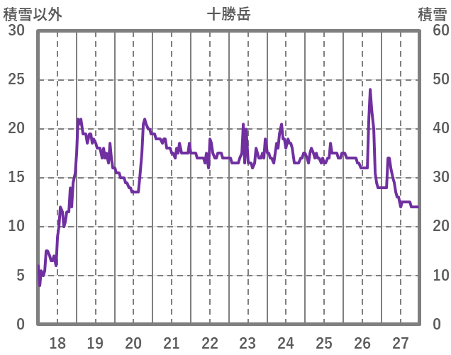 | 日 | 時 | 気温 | 降水 | 風向/風速 | 日照 | 積雪 | 降雪 |
