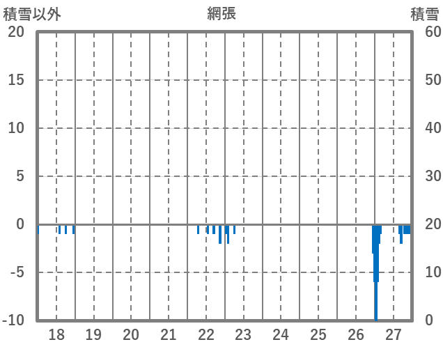 | 日 | 時 | 気温 | 降水 | 風向/風速 | 日照 | 積雪 | 降雪 |