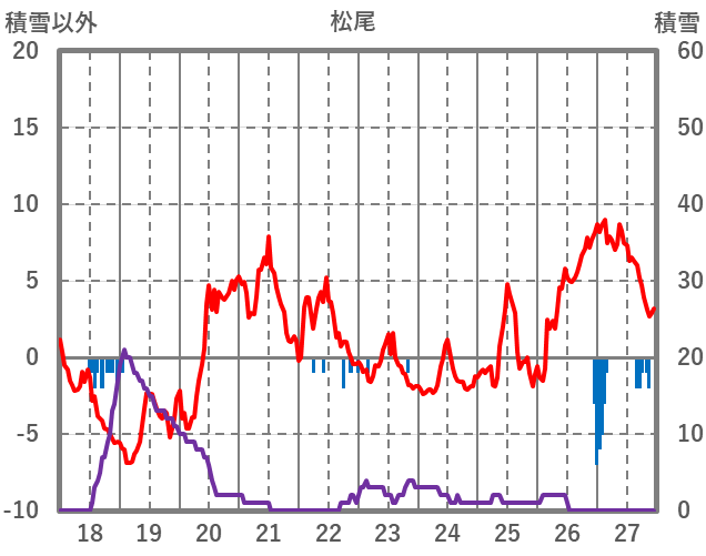 | 日 | 時 | 気温 | 降水 | 風向/風速 | 日照 | 積雪 | 降雪 |