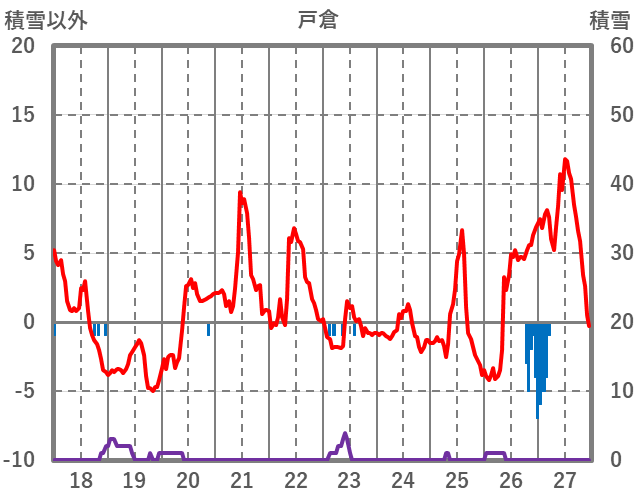 | 日 | 時 | 気温 | 降水 | 風向/風速 | 日照 | 積雪 | 降雪 |