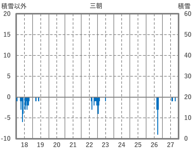 | 日 | 時 | 気温 | 降水 | 風向/風速 | 日照 | 積雪 | 降雪 |