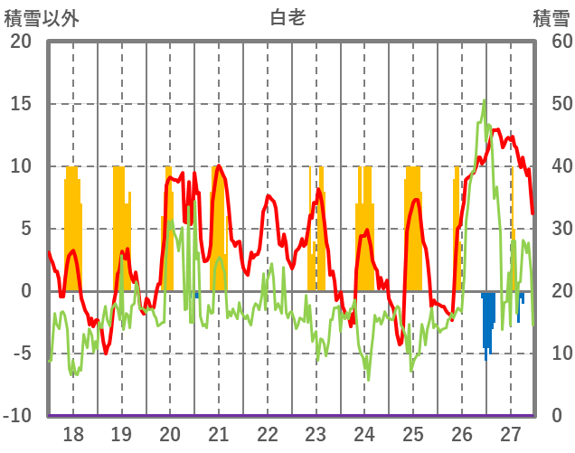 | 日 | 時 | 気温 | 降水 | 風向/風速 | 日照 | 積雪 | 降雪 |