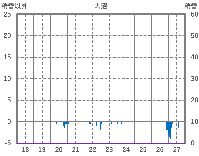 | 日 | 時 | 気温 | 降水 | 風向/風速 | 日照 | 積雪 | 降雪 |