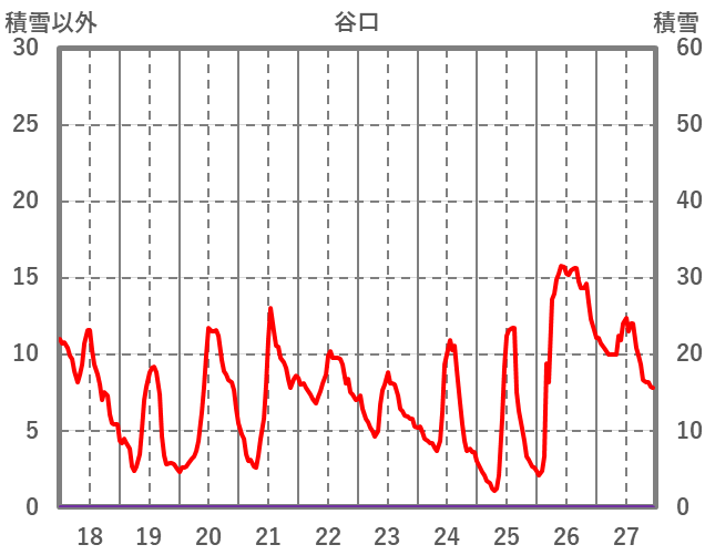 | 日 | 時 | 気温 | 降水 | 風向/風速 | 日照 | 積雪 | 降雪 |