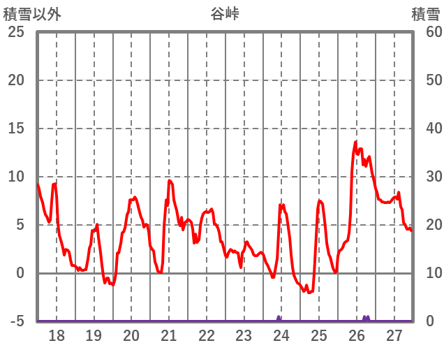 | 日 | 時 | 気温 | 降水 | 風向/風速 | 日照 | 積雪 | 降雪 |