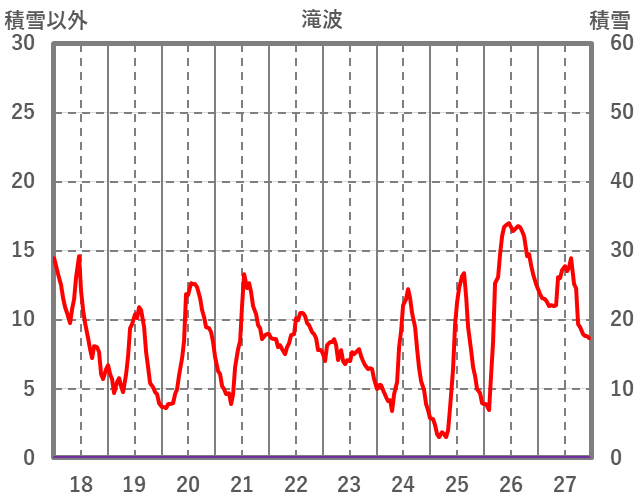 | 日 | 時 | 気温 | 降水 | 風向/風速 | 日照 | 積雪 | 降雪 |