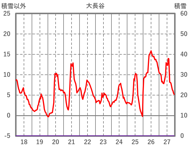 | 日 | 時 | 気温 | 降水 | 風向/風速 | 日照 | 積雪 | 降雪 |